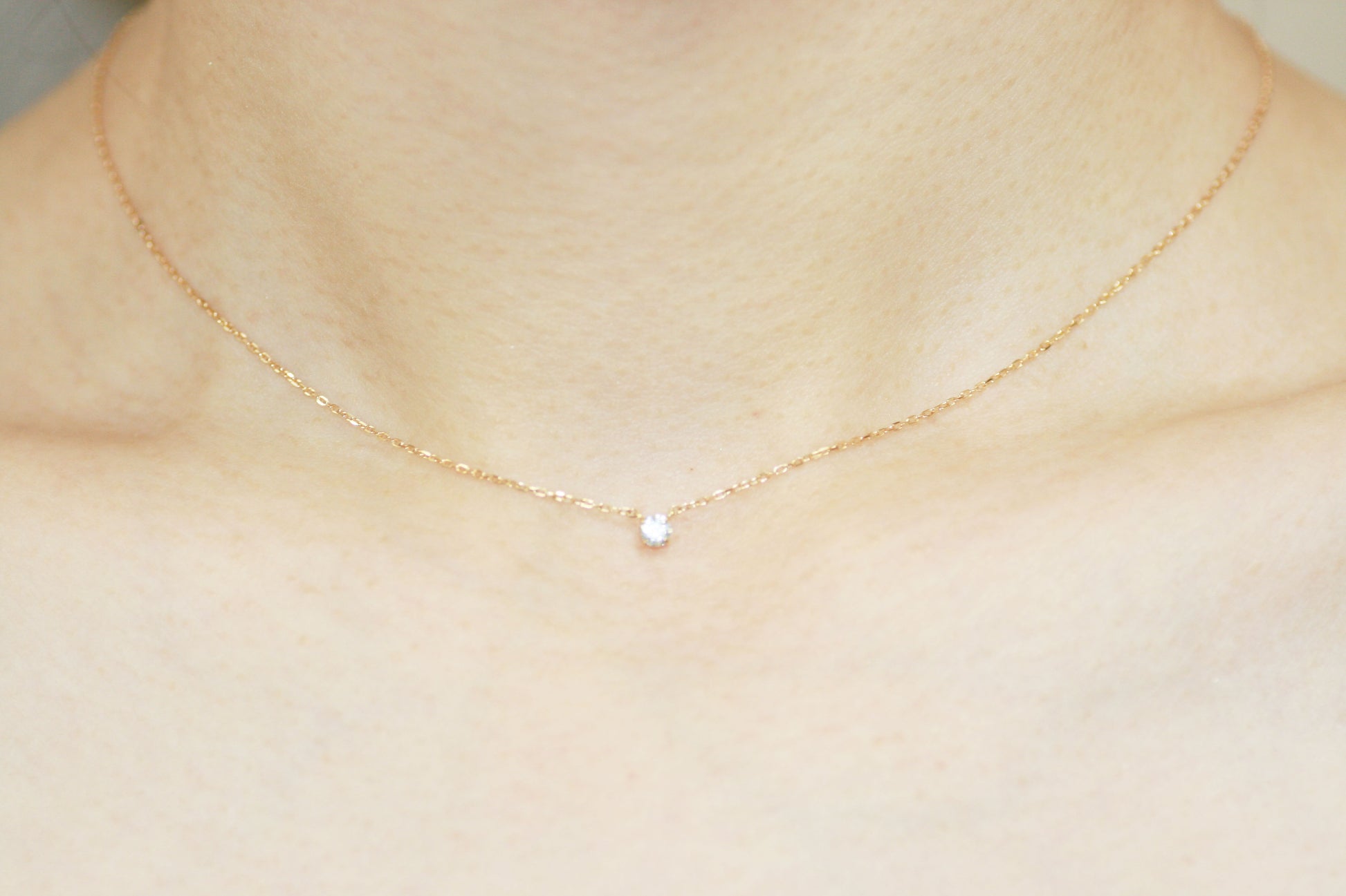 動くたびにラメのような輝きを放つ一粒ダイヤモンドネックレス。